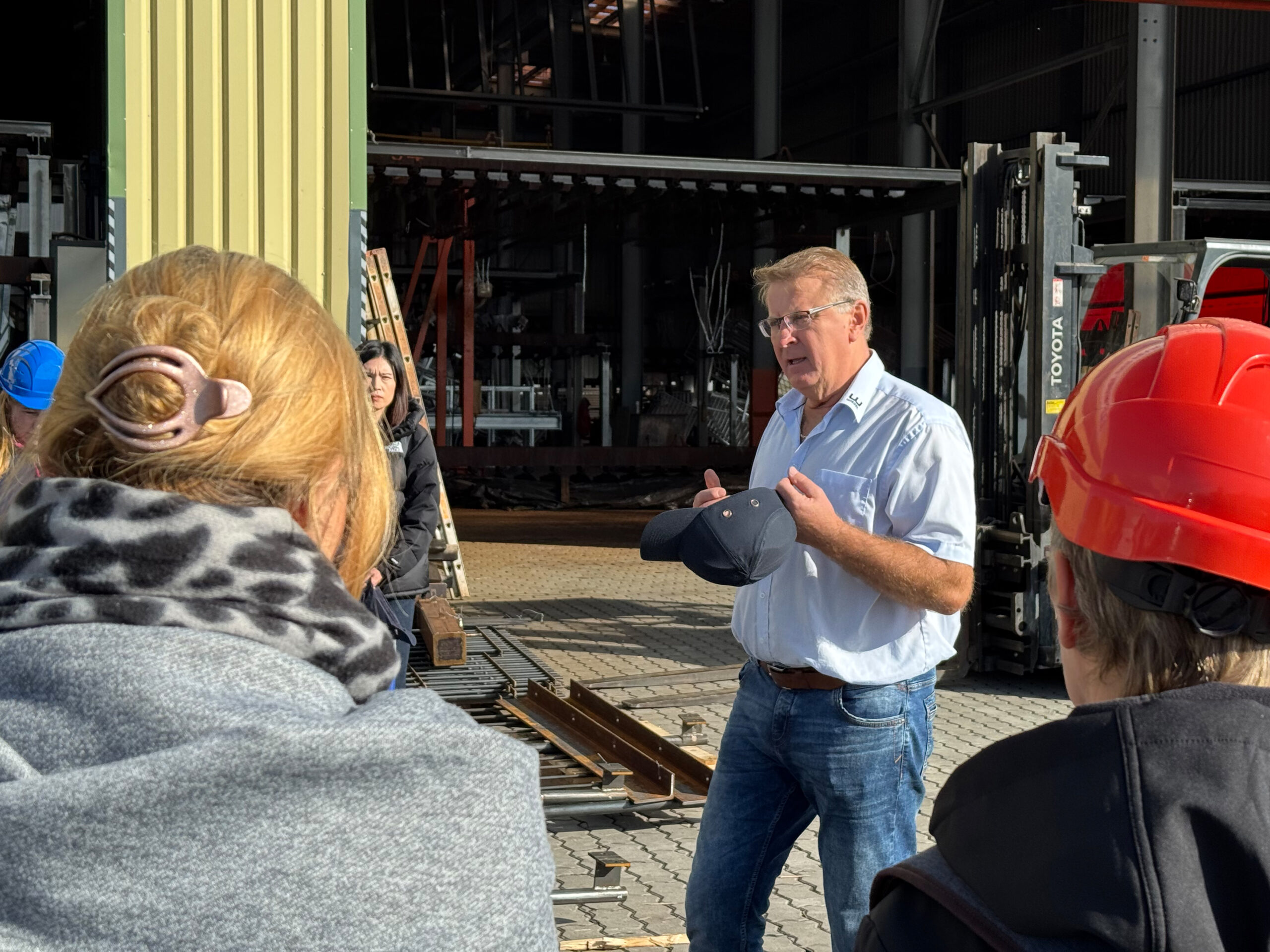 The second day was all about practical experience: In Höchstadt, the trainees were able to learn about the powder coating process and try it out for themselves. Plant manager Taşkin Ağcioğlu gave a guided tour of the plant and provided valuable insights. The tour then continued to the hot-dip galvanising plant in Höchstadt, where plant manager Reinhold Taut explained the entire hot-dip galvanising process to the trainees.