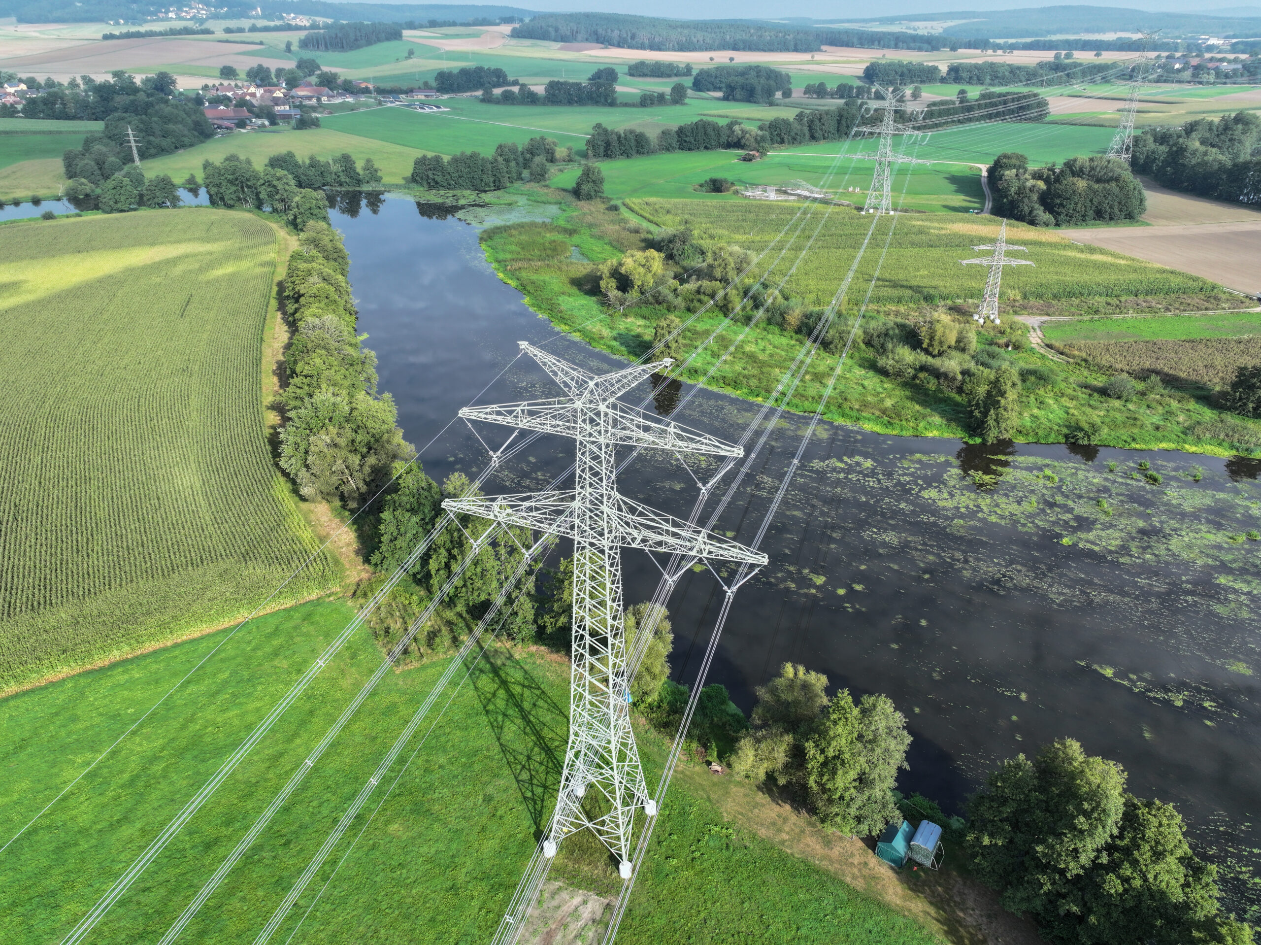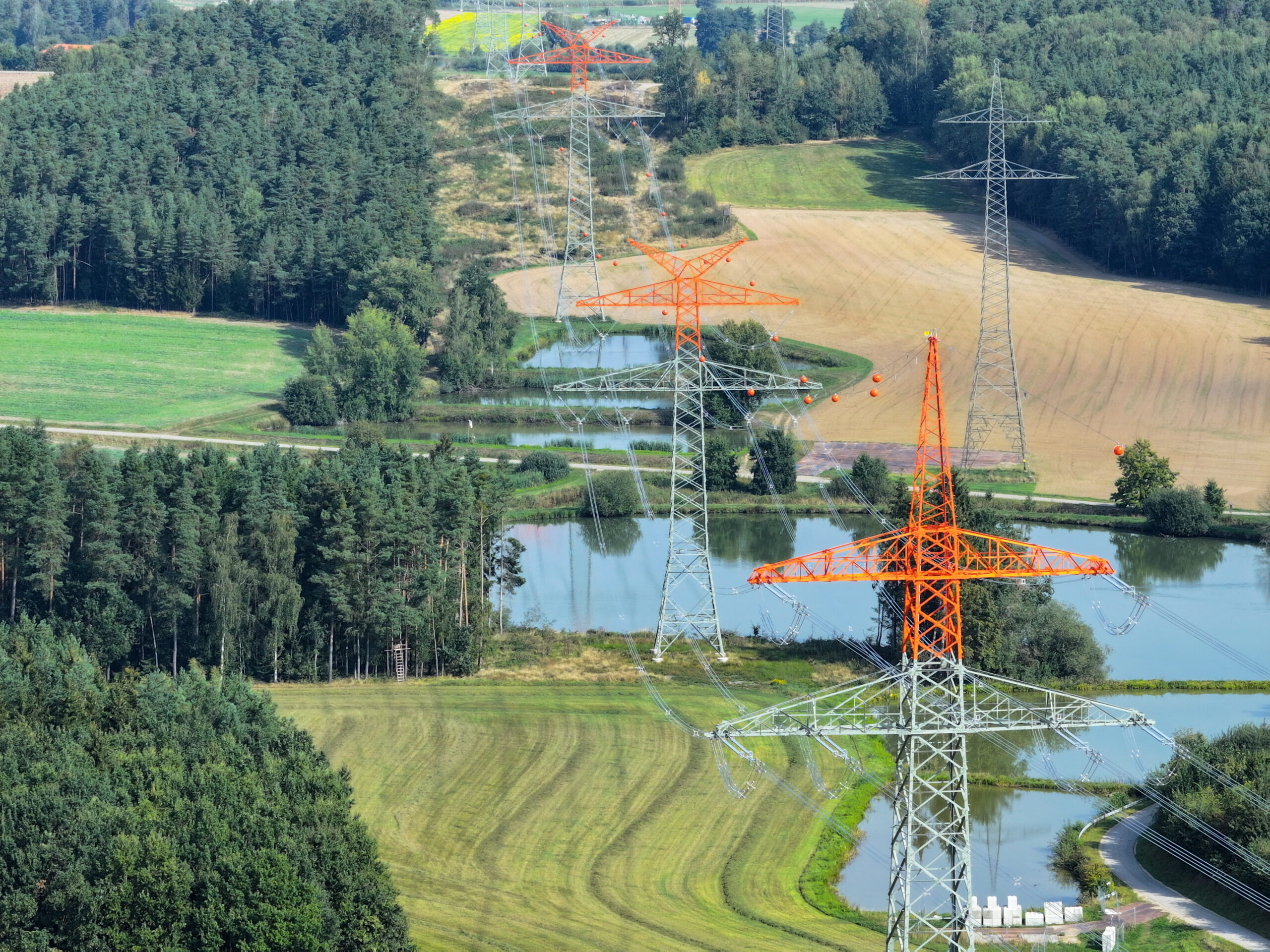 Die Models dieses besonderen Shootings: Bis zu 79 Tonnen schwere und bis zu 65 Meter hohe Stromgittermaste aus der Produktion von WIEGEL Parey, die zur „Ostbayernring“-Stromtrasse von Netzbetreiber TenneT gehören.